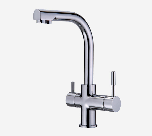 Für alle, die keinen separaten Hahn wollen, gibt es die Möglichkeit zu einem Upgrade. Dieser 3-Wege-Wasserhahn versorgt dich nicht nur mit gefiltertem Wasser, sondern er liefert dir auch ungefiltertes heißes und kaltes Wasser. Er ersetzt somit deine Küchenarmatur.