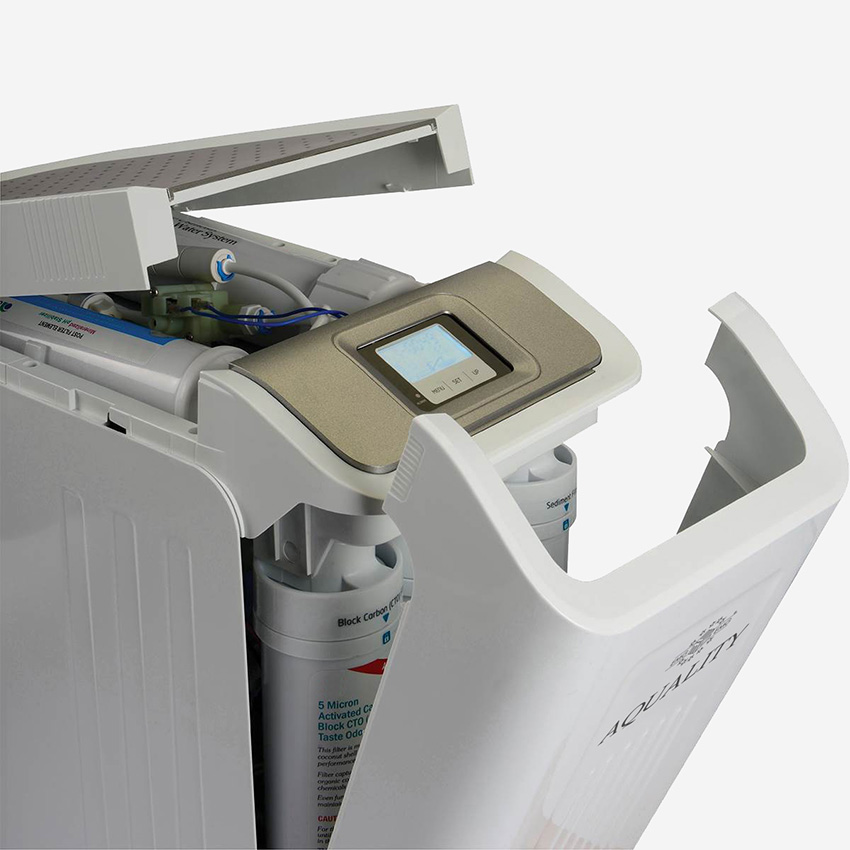 Der AQUALITY DIGI pH ist deine eigene, unerschöpfliche Quelle in deiner Küche. Er wird unter der Spüle verstaut und direkt an die Kaltwasserleitung angeschlossen. Versteckt im Schrank verrichtet er zuverlässig seine Arbeit, damit du zu jeder Zeit kristallklares und erfrischendes Wasser zur Verfügung hast. Mit seiner Steuereinheit überwacht er zusätzlich alle notwendigen Prozesse, sodass du immer alle Funktionen im Blick hast.