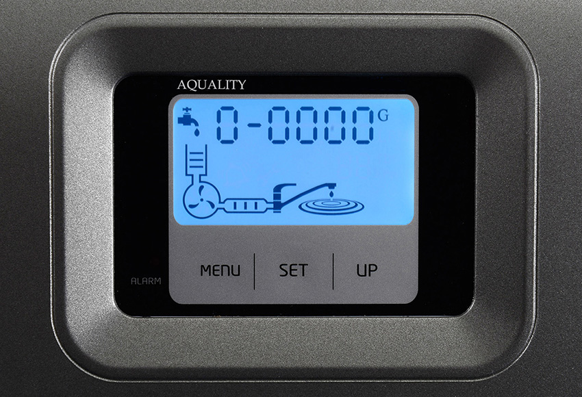 Auf dem Display des AQUALITY DIGI pH kannst du alle wichtigen Informationen ablesen. In der Standardeinstellung zeigt er dir an, wieviel Wasser bereits gefiltert wurde. Die Restlapazität der einzelnen Filterkartuschen kannst du dir per Knopfdruck anzeigen lassen. Und sollte das Gerät mal einen Fehler aufweisen, dann bekommst du die entsprechende Servicemeldung angezeigt.
